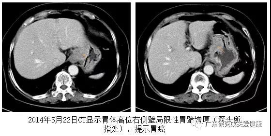 一个月后,老人吞咽困难改善,8月份复查CA19-9 降低到307单位。医生建议口服希罗达。10月26日复查胃镜,发现原肿瘤已不见,留下白色疤痕。希罗达用至2015年5月,共用9个月,因不良反应而停药。但吸氢继续进行。每半年检查一次CT。近几次CT显示贲门通畅,原先肿瘤征象已经消失。CT等多种检查,未见癌肿转移。