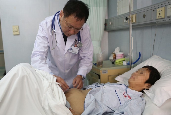 王建南教授术前为患者检查