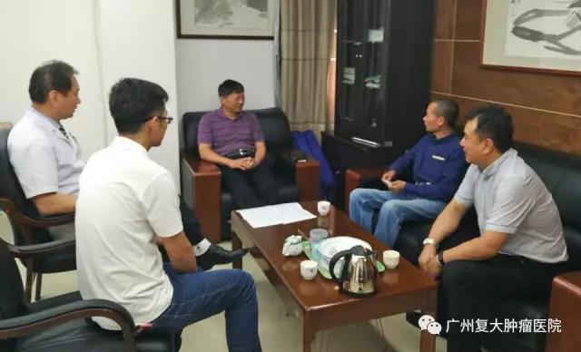2017年5月27日下午,羊城晚报副总编辑林海利一行专程来到广州复大肿瘤医院海珠院区,探望来自揭西的贫困癌症患者蔡少锐,并送上慰问金。广州复大医疗股份有限公司总裁左建生、广州复大肿瘤医院荣誉院长王建南教授等热情迎接并陪同探望。林海利对广东省红十字会、广东省扶贫办与复大合作开展的“精准扶贫”项目表示赞赏。