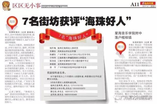 2017年3月31日,由中共海珠区委宣传部、海珠区文明办及信息时报推出的“海珠好人”3月评选结果揭晓。经过公开推荐、网络投票评议、评审小组打分,最终,广州复大肿瘤医院海珠院区门诊儿科医生宁伟芳等7人荣获2017年3月“海珠好人”称号。