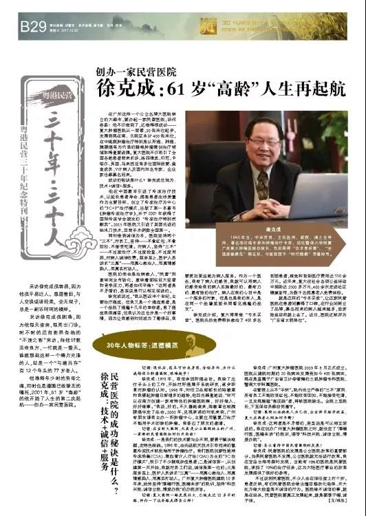 在广州这样一个公立名牌大医院林立的大都市,要办起一家民营医院,谈何容易!他不仅做到了,还做得很成功——复大肿瘤医院从一层楼、20张床位起步,发展到现在南、北院区共计400张床位,在中晚期肿瘤治疗特别是以肝癌、肺癌、胰腺癌等为代表的疑难肿瘤微创治疗领域取得重要进展。复大医院不仅吸引了全国各地患者前来求诊,连菲律宾、印尼、卡塔尔、英国、马来西亚等多位国际政要、皇室成员、VIP病人及国内知名专家、企业家也都慕名而来。
