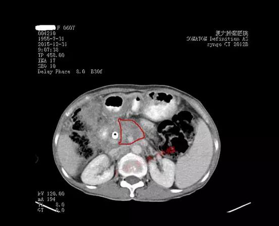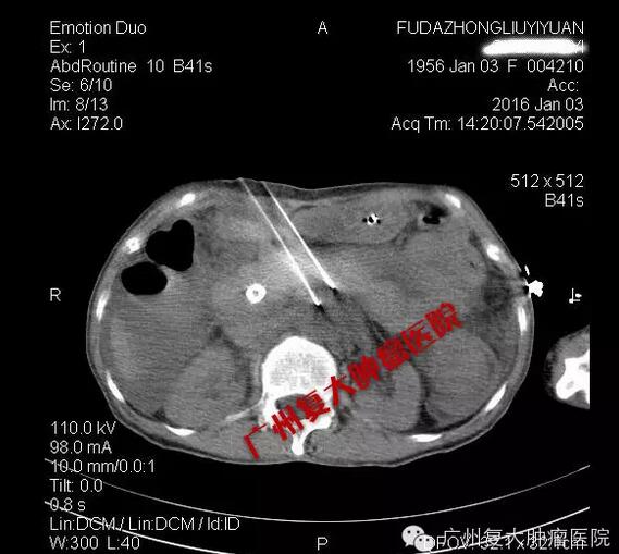 昨天,我们用纳米刀治疗的陈女士来自香港,是一位晚期胰腺癌病人。在香港,她的治疗失败了,肿瘤进展,阻塞胆总管,引起全身黄疸,不得不做了胆管内支架。不幸的是,支架引起胆道感染,持续发烧,两星期前体温才得以控制,可是,身体却变的非常虚弱,体重只有39.5公斤。在香港,接诊医生表示不可能再给她做任何治疗了。她多方打听,通过在广州的朋友得知复大肿瘤医院的纳米刀技术。咨询我之后,她来到我们医院,元旦前两天入院。