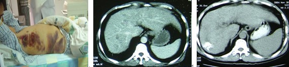 老高肝内多个转移,皮下大片出血治疗前,肝内多发性转移灶治疗后肝内癌瘤大部消失