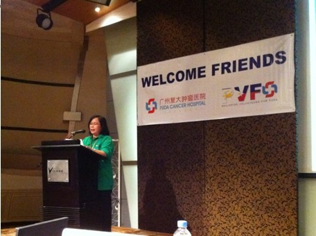 Rus 正在癌症治疗讲座会上讲述自己的抗癌经历