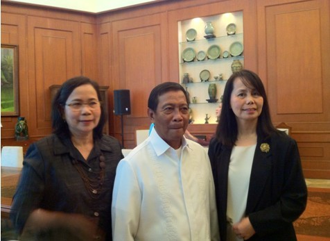 菲律宾副总统比奈(中)接见Rus女士(左)和她的妹妹
