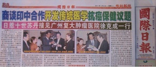 有些外国人对中医情有独钟。讲个故事吧。2年前,我应邀在印尼访问日惹王宫(Kraton of Jogyakarta)。这是已有近250年历史的故宫,位于日惹市中心,建成于1756年。印尼独立后政府允许原王族一家继续住在宫内,现住宫内的是哈孟古·布沃诺十世苏丹(皇帝),其父哈孟古·布沃诺九世过去曾任印度尼西亚共和国副总统。哈孟古·布沃诺十世苏丹现在总管日惹地区五个省,其地位高于一般省。他的管家的太太患晚期乳腺癌,在我院治疗后恢复极好,也许为感激我院,执意邀请我去访问。上午8点50分,我和同事来到接待室,见墙上挂着穿着皇服的十世苏丹和皇后照片。第一次到皇宫,心里不免有些紧张。9点整,侧门开了,随着走出一位穿着笔挺西装的中年人,快步走到我面前,紧紧握住我的手,拉着我坐在他身边。此时我才观察这位“皇帝”。高大的身材陪着带有铜色的面庞,显示一副现代南洋人特有的风采,与墙上照片里穿着~皇服~的苏丹判若两人。稍微寒暄几句后,他就操着一口流利英语,与我谈起中医来。他说:他相信草药,那是没有副作用的,而中国是世界上最成功应用草药的国家……”,他说日惹有很多特殊草药,希望与中国开展合作。十世苏丹再次握着我的手说:“20年以后,中国将是世界最强大的国家,中医无疑会走向全世界。”(图11)