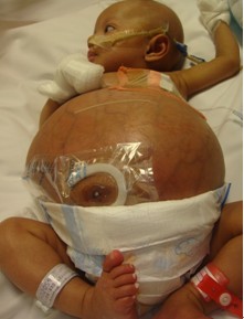 那是2011年7月的一天中午,在我院工作的叙利亚医生Zaid急匆匆来到我的办公室,递给我一张照片。照片上显示的瘦削的肢体和膨大的肚皮、焦黄的皮肤,以及插在鼻腔和腹腔的引流管,让我阵阵心痛。邮件上写道:患者娜娜,年龄9个月;诊断:恶性畸胎瘤;曾予化疗无“反应”;肠梗阻;腹腔穿刺并发肠穿孔,腹腔感染,可能有败血症?
