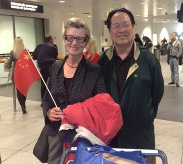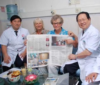 郭林第二次来院时,带回了丹麦的报纸,上面登载了她在复大医院治疗的全过程郭林在机场欢迎作者(2009年10月于哥本哈根)