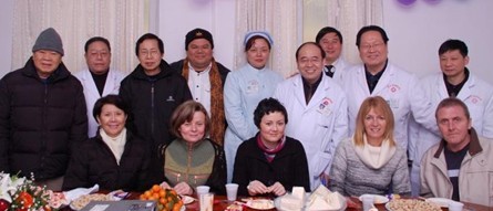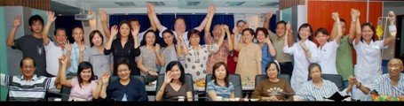 穿着统一“PVF”服装的菲律宾复大志愿者、患者和作者、我院医生聚会来自欧洲的患者和作者在一起