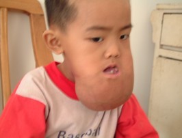 2012年1月8日,我和同事去到铭仔的家。那是离广州300公里的怀集县二度村,一个偏僻的小山区。这是我第4次来到这里了。第一次是2002年的5月份,铭仔刚从我院治疗后回家不久。他是患颈部巨大恶性畸胎瘤,曾被认为“不治”,最后在我院获得康复的。这次去铭仔家,没有变的是那条小路,依然小得只能勉强通行汽车,变的是铭仔家低矮的平房换成了二层楼房,铭仔长高了,下巴和颈部处有肿瘤清除后留下的疤痕,已有些影响说话和进食了,我想要利用假期为他作整形手术了。我走进铭仔的房间,一张小床,旁一方桌子,上面摆了不少书,除了中学课本外,有几本肿瘤科普书籍,我随手翻开一本书,要他读。他把“什么是肿瘤”“什么是恶性肿瘤”竟然一字不漏读下来。过去我总认为铭仔不爱讲话,实际上他内心感情十分丰富。我问他才上初中二年级,怎么读起肿瘤书籍,他说:“爷爷,你治好了我的肿瘤,我要报答你,回报社会,将来要像你一样,做个医生,为病人服务。”(图24)