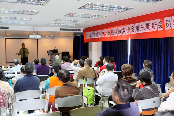 上图:郭琳女士2013年11月向新患癌症病人讲述亲身经历。