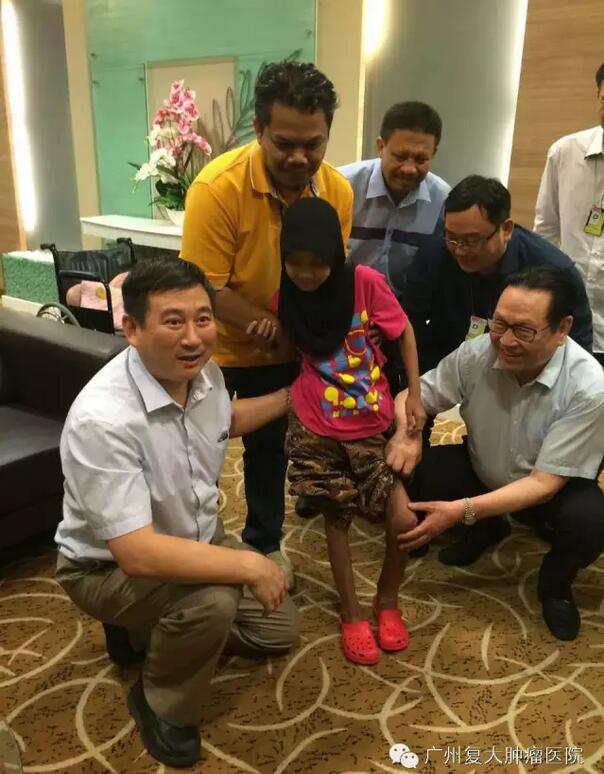 徐院长一行到马来西亚探访患者,艾琳一家专程到机场迎接。术后20多天,艾琳已可以短暂站立了