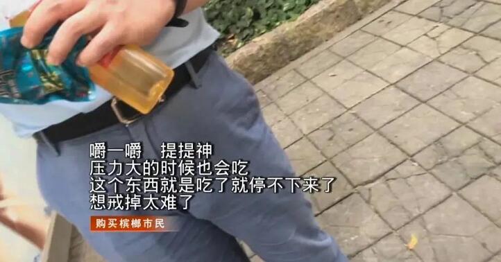 “槟榔里的槟榔碱,对交感神经系统有兴奋的作用,也就是平常我们所说的提神的作用,比如司机这个职业,他们在开车的时候容易犯困,停下车,也不下车,而是通过咀嚼槟榔来提神,久而久之就形成了一种生活习惯。”