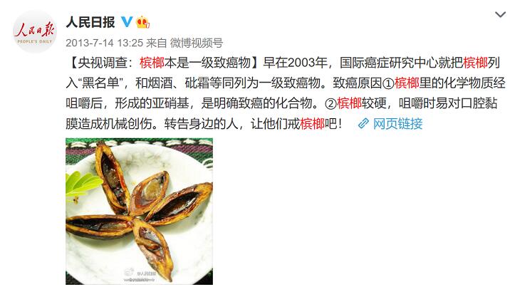 早在2003年,国际癌症研究中心就把槟榔列入“黑名单”,与砒霜等同列为一级致癌物。