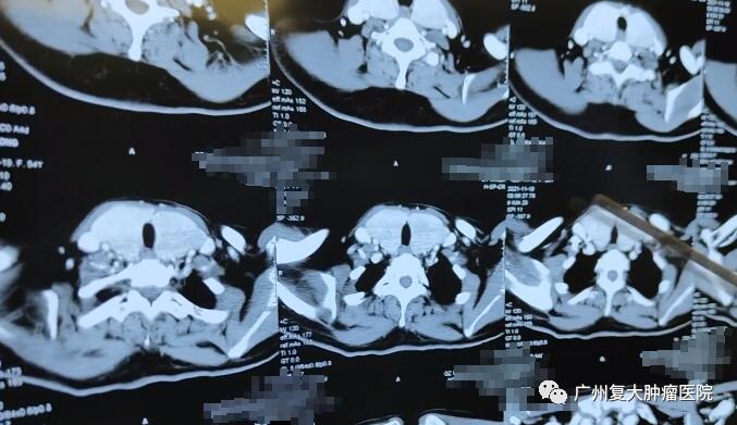 为进一步治疗,刘女士来到我院就诊。入院后完善相关检查,刘女士的双侧甲状腺III°肿大(III°即超过人体的胸锁乳突肌),其内可见多个结节状稍低密度影,较大者位于左叶,大小约10.9x0.7cm,边界模糊,增强后示明显强化。