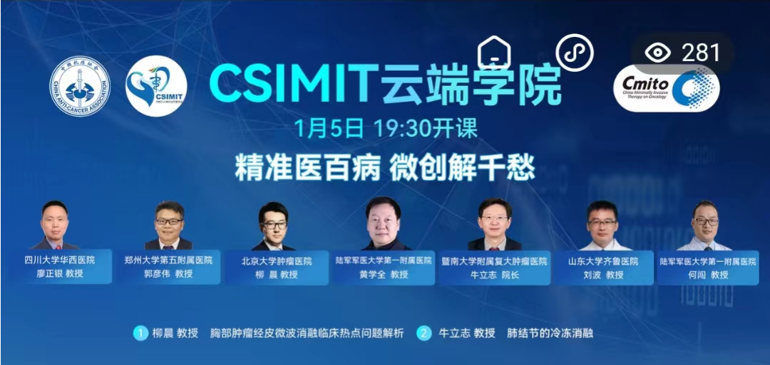 日前,牛立志院长在CSIMIT云端学院课堂上分享关于肺结节相关内容。该学院由中国医药教育协会介入微创治疗专业委员会主办,中国抗癌协会肿瘤微创治疗专委会协办的,旨在通过这种方式让更多的医生学习和掌握最新的介入微创治疗技术,实现介入医师同质化诊疗水平,为介入微创同道们提高丰富的经验。
