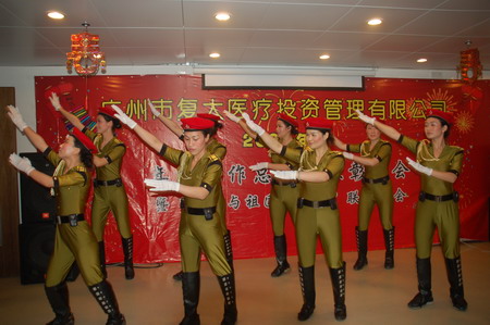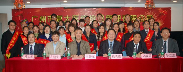 2010年1月30号下午2点30分,,广州市复大医疗投资管理有限公司 “2009年度 工作总结、表彰大会”在复大医院9楼会议室大厅隆重举行。复大医院、复大肿瘤医院、复大医药有限公司全体员工团聚一堂,到场领导包括:王怀东董事长,总院长徐克成,院长左健生、牛立志、杨大明,复大医药公司总经理刘建国等。嘉宾有广东省第二人民医院党委书记吉琳先生、“建国六十年60位著名主持人之一”侯玉婷女士等。