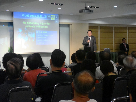 徐克成教授正在作题为“别让治癌变二度伤害”的演讲