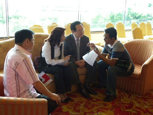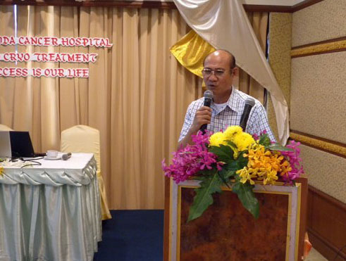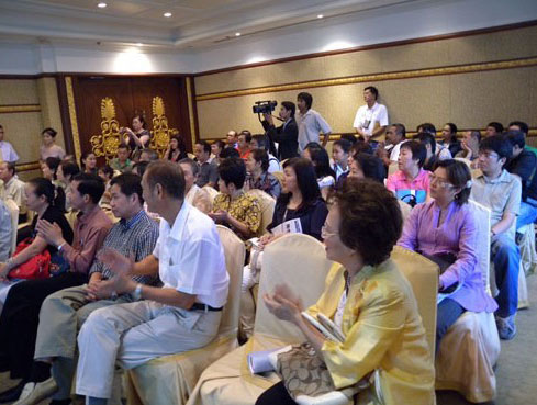 曾经在我院治疗过的泰国病人出席了新闻发布会,已健存3年的复发性肝癌患者猜雅先生、患结肠癌肝转移的方先生,以及患胃癌目前已康复的卢先生,先后介绍了在我院治疗的经过以及他们抗击癌症取得成功的体会。年已90岁的吴老先生在他儿子陪同下,也出席了会议,并高兴地接受记者的拍照。