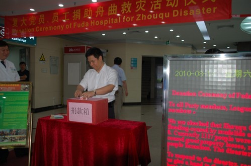 灾捐款现场,徐克成总院长和左建生总经理做了动员讲话,徐院长提到:每次灾难是对国家的考验,同时也在考验着每个中国人,我们医院提倡厚德行医,济世关爱。目前陕西舟曲人民正遭受重大泥石流灾害,我们要有爱心,积极捐款,为缓解灾区人民的疾苦做出自己的贡献。