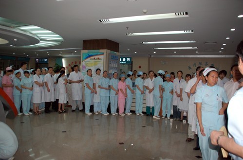 在徐院长的带领下,全院职工踊跃参与,并吸引了部分本院外籍病人参与捐款。在充满温情的背景音乐声中,现场气氛热烈,短短半个小时内,全院共捐款26100元。院领导表示,后续将继续动员力量,捐钱捐物,表达对灾区人民的一片深情厚意。