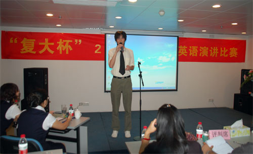 2010年9月1日晚,第一届复大杯英语演讲比赛顺利召开。主题是感恩复大。活动由复大医疗投资集团工会举办,比赛地点在复大医院9楼的会议室。参与的选手来自医院各个职能部门,总共有30位选手同台竞技。徐克成总院长、牛立志院长、刘建国副总经理 、杨大明副院长、阮润生博士、朴相浩博士、邱大卫教授等领导作为特约嘉宾,全程观看了比赛。