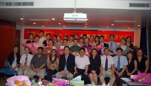 最后是惊心动魄的成绩揭晓环节。经过各位评委的认真评判,24号选手何丽华获得了冠军,她演讲的题目是“To be the one”。29号选手刘俊诣、30号选手王芳获得了亚军,4号选手孔小峰、11号选手郑欣、12号选手黄丽文获得了季军。相比其他选手,获奖者们在演讲内容、流利程度、英文文法、演讲仪态、姿体语言方面有更加优异的表现。