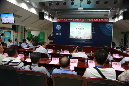 在复大肿瘤医院举行的座谈会上,徐克成总院长及医护人员代表介绍了复大的概况、发展历程、特色疗法等。