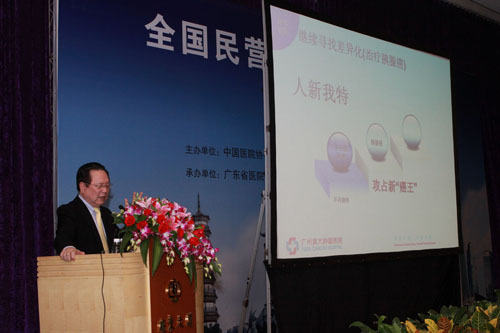 2010年12月2日,全国民营医院科学发展研讨会在美丽的羊城隆重召开。中国医院协会李月东秘书长、卫生部医院管理研究所梁铭会所长、中国医院协会民营医院管理分会于宗河会长、广东省卫生厅廖新波副厅长等领导出席本次会议。