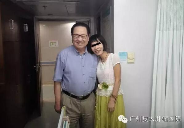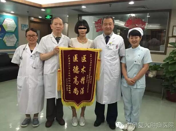2016年5月10日上午,曾“身怀”6.1公斤巨瘤的林女士经过一个多月的精心治疗于当日出院。临走前,她换上了裙子,高兴地说:“我终于可以穿上裙子啦!”她像孩子般充满活力。此时,她的丈夫忍不住流下了眼泪。随后,林女士向李海波副院长、王建南教授等医护人员送上了“医术精湛,医德高尚”的锦旗。见到徐克成总院长后,她紧握着徐院长的手说,“谢谢您,徐院长,我要跟您合个影,感谢复大肿瘤医院再次给了我生命。”