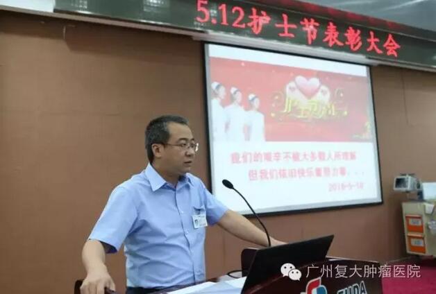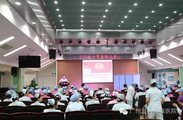 2016年5月19日下午,广州复大肿瘤医院召开“5•12护士节表彰大会”。表彰大会由复大肿瘤医院常务副院长李海波主持,徐克成总院长、刘建国总经理、牛立志院长及各临床科室主任、职能部门负责人、护士代表近200人参加了大会。