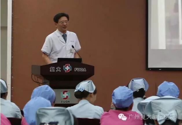 他表示,医院护理团队有100多名护士,这是复大医院最宝贵的财富。刘建国又从五个方面肯定复大肿瘤医院护士们的工作:第一、护理工作是复大医院工作的重要环节,在保障病人安全方面发挥了很大的作用。第二、每位护士用自己的一言一行诠释和演绎着BEU的服务理念(BEU指基本服务、预期服务、惊喜服务)。第三、复大医院建院13年以来,形成了一支相对稳定、忠诚度较高的护理队伍。第四、优秀的护理成员,在工作中展示了靓丽的风采。第五、复大医院护理团队以“科学护理、服务无限”为宗旨,用“心”工作,以微笑服务为标准,打造学习型护理团队,实现“BEU”服务。