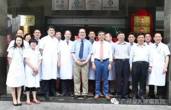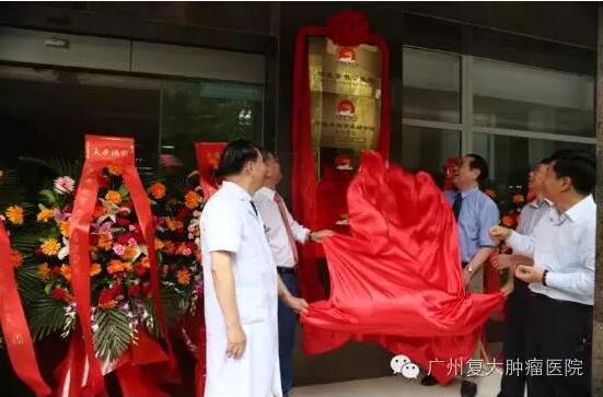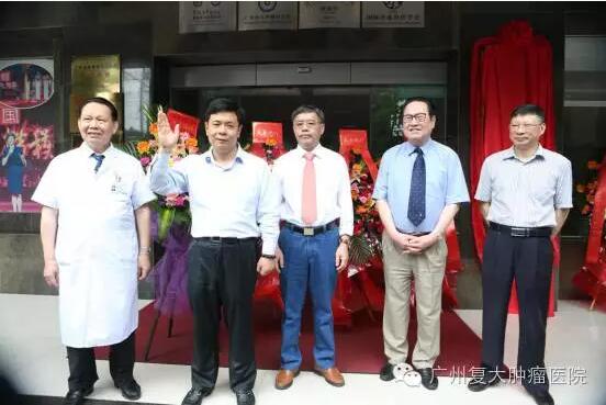 广州复大医疗股份有限公司总裁左建生、复大肿瘤医院总院长徐克成、荣誉院长曾宗渊教授与李朝龙教授一同揭牌