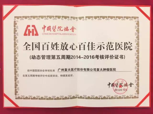 2016年10月15日,全国百姓放心示范医院动态管理第五周期总结交流会暨第六周期启动会在北京召开。会上,“全国百姓放心百佳示范医院”新榜单揭晓,广州复大肿瘤医院获选“全国百姓放心百佳示范医院”。广州复大肿瘤医院信息科主任陈碧江荣获“全国百姓放心示范医院优秀工作者”称号。