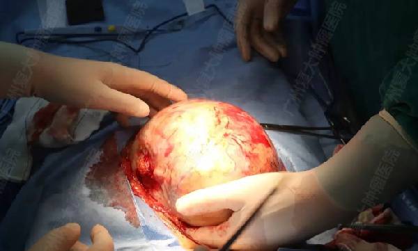 1月6日上午8:20手术开始。患者腹腔内硕大的肿瘤在灯光之下暴露无遗……王教授从容淡定,柳叶刀快而准,术中患者出血不多,仅需输血200ml。在外科团队通力合作下,王教授成功将肿瘤完整地剥离出来,瘤内容无丝毫泄漏。