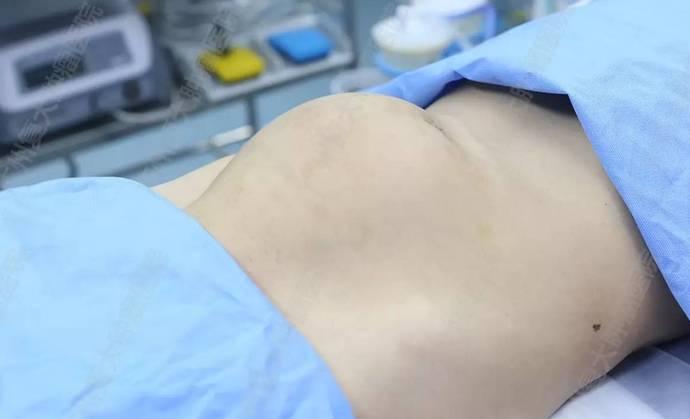 术前,病人腹部像篮球一样高高隆起