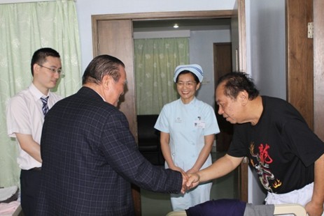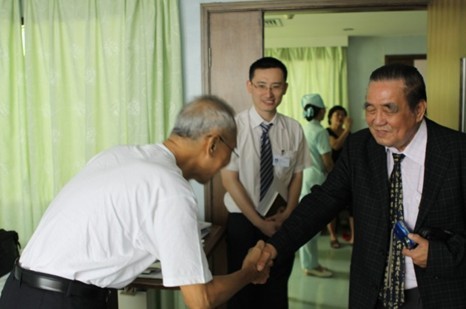 第二个病人是62岁的男性印尼患者,这个患者1998年9月在当地诊断肾细胞癌,并接受右侧肾癌根治术,手术顺利。2009年复查发现双肺转移,2009年11月行肺转移癌切除术;2011年3月腹部CT检查发现左肾转移,骨扫描发现多发骨转移,来我院后完善相关检查,并于2011年3月25日给予碘粒子植入治疗,目前骨转移处的癌肿明显缩小。李卓辉先生亲切问候了病人住院后的状况,这个患者自我感觉疼痛缓解,整个人的精神状态好转,他尤其提到复大医院的服务,认为复大医院的医生和护士很关心他,让他有了信心,而且复大医院的微创治疗手段避免了开刀手术,让他感觉更轻松。说到这里,这个病人和其家属都竖起了大拇指。