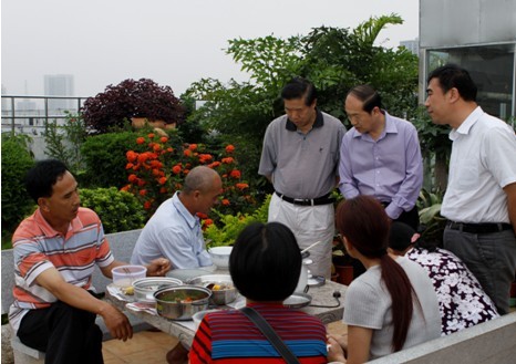 在出门的时候,偶遇到医院楼顶休息的几位病人及家属。窦书记走上前去,问其中的一个病人:你来自哪里?