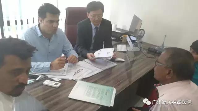 牛立志博士在复大驻印度办事处为前来咨询的印度患者解答问题