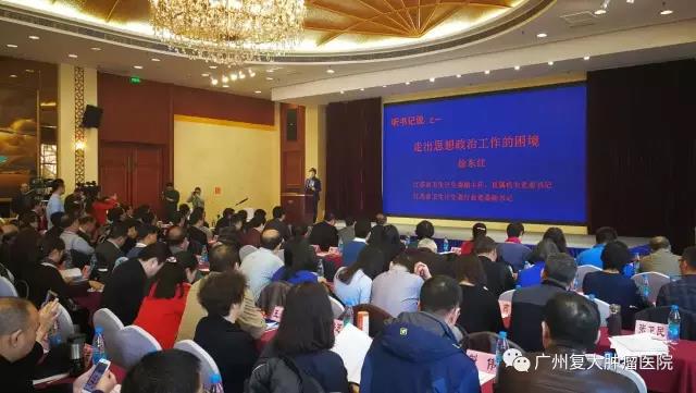 本次大会邀请了唯一一家民营医院——广州复大肿瘤医院参会。在“听书记说”讲坛上,广东仅有两家医院代表上台演讲,一家为南方医科大学珠江医院,该院党委书记黄立农演讲的题目为“爱与使命同行”;另一家医院是广州复大肿瘤医院,该院团委书记翟芮演讲的题目为“她要加入共产党——复大医院彭细妹的故事”,她的演讲得到论坛主持人、中国卫生计生政促会秘书长张建的好评。