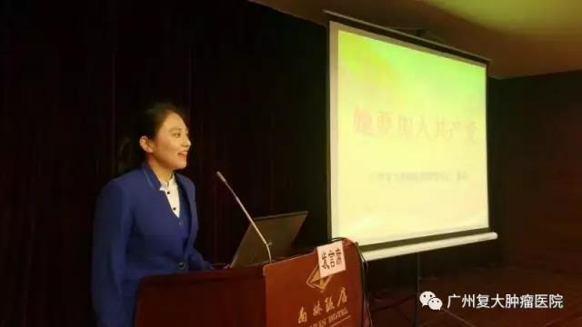 广州复大肿瘤医院团委书记翟芮,做了题为“她要加入共产党——复大医院彭细妹的故事”的演讲。