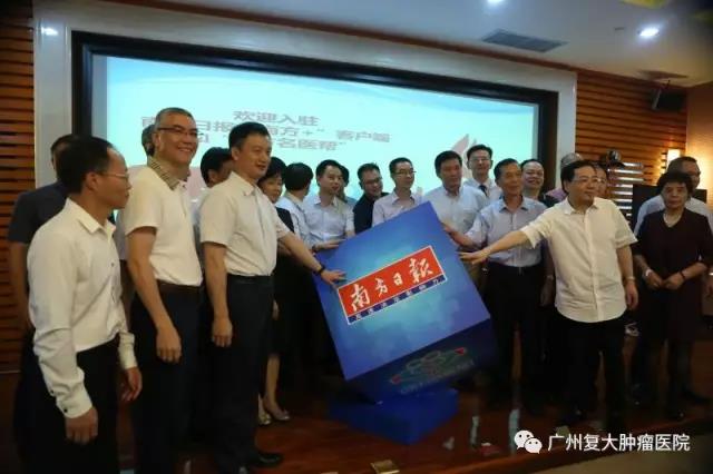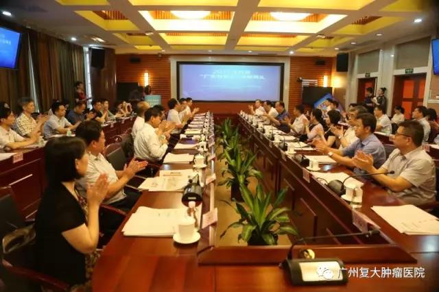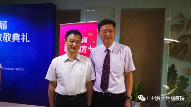 ▼暨南大学附属广州复大肿瘤医院院长牛立志与省卫生计生委主任段宇飞合影。