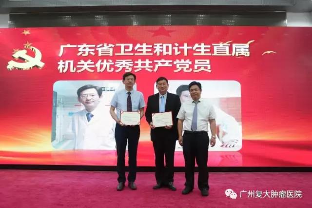△ 穆峰(中)获广东省卫生和计生直属机关优秀共产党员称号