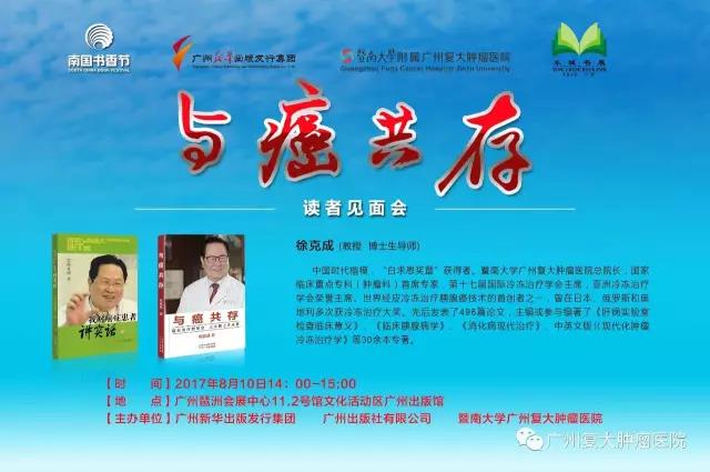 本次书香节的一大亮点,便是吸引癌症患者,觅求防癌抗癌有效新方法的广大群众,以及“时代楷模”,“白求恩奖章”获得者,暨南大学附属广州复大肿瘤医院总院长徐克成教授的热心读者的一大盛会——“与癌共存”读者见面会。