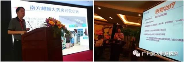 名誉主任委员、南方医科大学南方医院刘世霆(如下左图)和副主任委员、广州医科大学附属第一医院魏理(如下右图)分别作了“南方医院麒麟大药房的经营发展情况”和“骨关节炎治疗新进展”的专题报告。