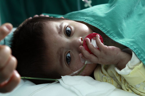 刚到我院时,娜娜的父亲怀着复杂的心情,内心充满疑虑,甚至对医护人员有一些刁难。2011年10月16日娜娜刚入院时,腹大如鼓,充满囊液,腹压非常高;缺乏营养,发育落后;连续发烧了几天。娜娜的到来,牵扯起所有医护人员的神经,让所有人想起了当初同样大肚子患有巨大卵巢癌的彭细妹。院内领导当即组织召开讨论会,研究治疗方案。
