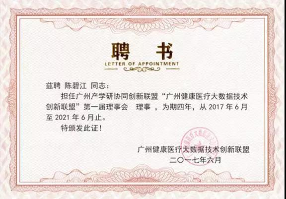 2017年12月3日,广州健康医疗大数据技术创新联盟授牌仪式在中山大学举行。暨南大学附属广州复大肿瘤医院成为发起成员之一,信息部主任陈碧江参加授牌仪式并受聘为联盟的理事。