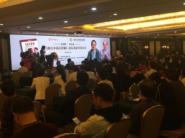 图片说明(图片由记者郭静拍摄):2018年3月22日下午,由中国著名肿瘤治疗专家徐克成教授编著,中国著名肿瘤学家、中国工程院院士汤钊猷评述的《践行中国式控癌》新书发布会在广州阳光酒店举行。新书作者汤钊猷院士、徐克成教授亲身到场,与市民分享中国式控癌理念及实践心得。汤钊猷院士表示,对癌症的治疗,要“消灭”与“改造”并举,践行“中国式控癌”。