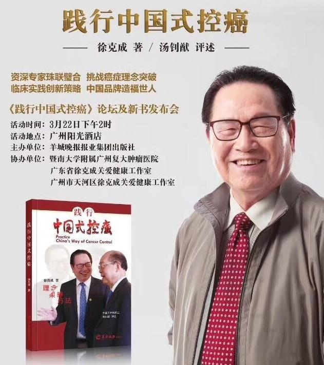 由中国著名肿瘤治疗专家徐克成教授编著,中国著名肿瘤学家、中国工程院院士汤钊猷评述的《践行中国式控癌》新书发布会3月22日下午在广州阳光酒店举行。新书作者汤钊猷院士、徐克成教授亲身到场,与市民分享中国式控癌理念及实践心得。