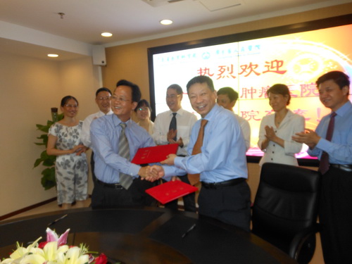 2012年9月3日,复大肿瘤医院与广东省人民医院正式确立双向转诊协作关系。当日上午,广东省人民医院党委书记、常务副院长曾国洪、广州复大肿瘤医院总裁左建生分别代表两院签署了《双向转诊合作协议书》,根据协议内容,两院将从人才、管理、设备、技术等方面进行合作,共同为国内外患者提供更良好的医疗服务。